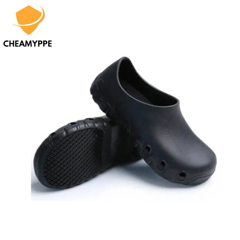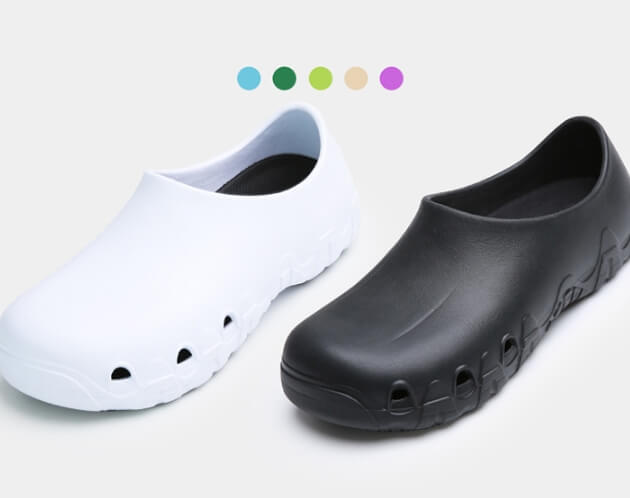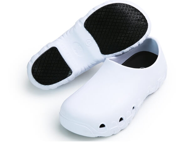 • Anti-skid soles, material resistant to high-temperature liquids. Cushioned insoles, humidity resistant, anti-baccterial, 100% washable.